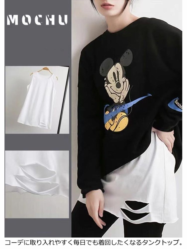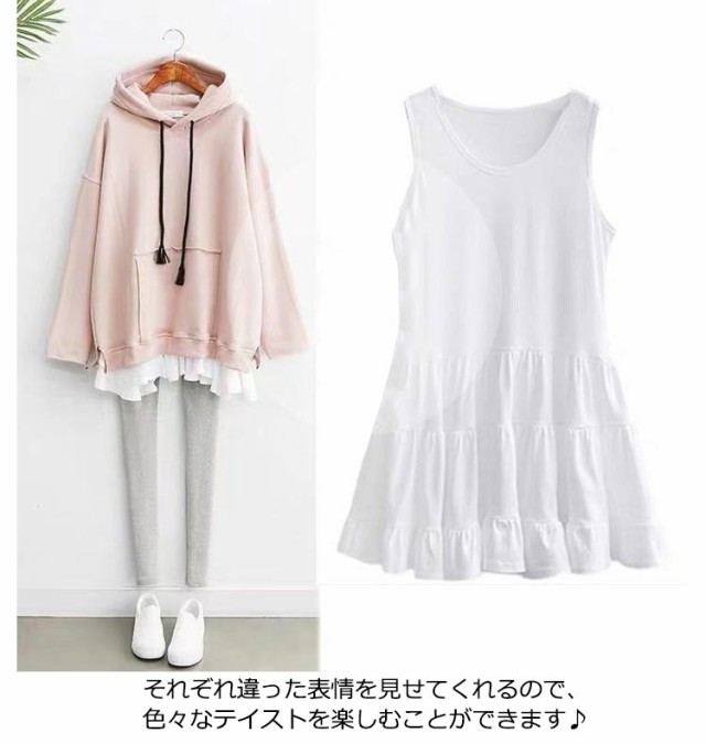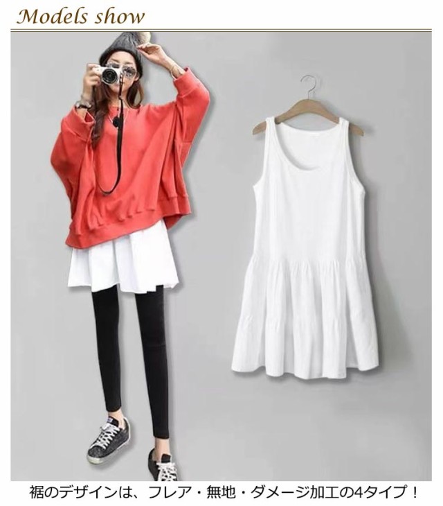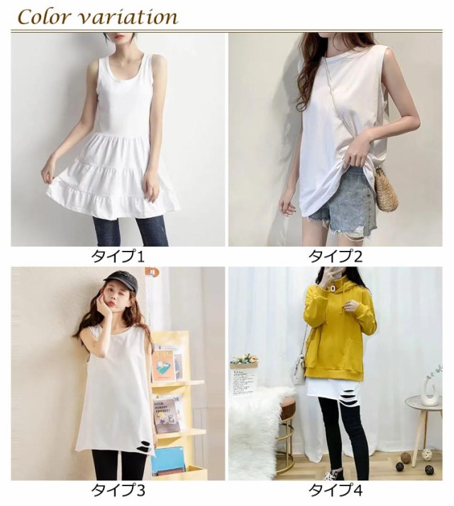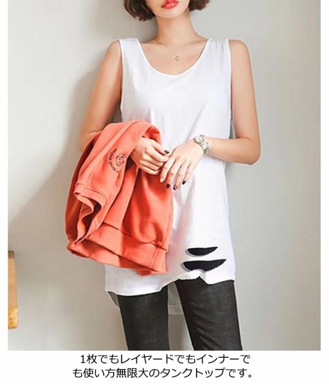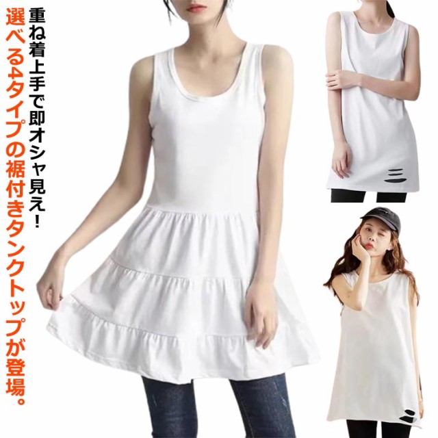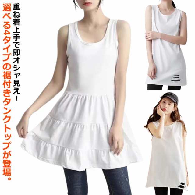 レイヤード タンクトップ 付け裾 レディース ロングタンクトップ キャミソール 重ね着 インナー ロングタンク フリル ノースリーブ レイヤード 体型カバー お尻が隠れる ダメージ加工 ティアード 無地 シンプル カジュアル