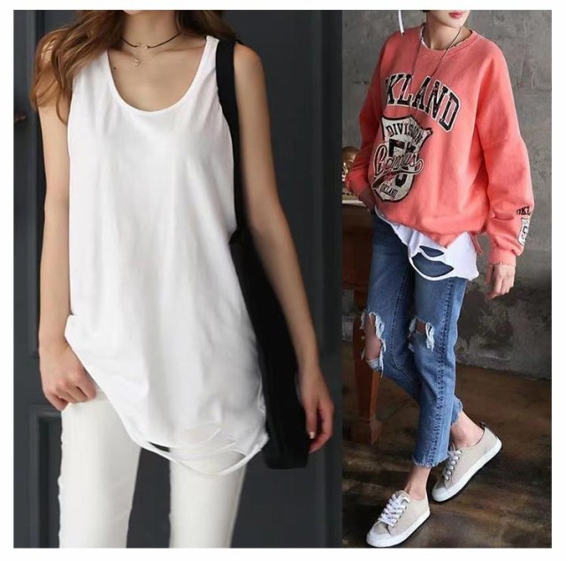 | 重ね着上手で即オシャ見え!選べる4タイプの裾付きタンクトップが登場。 裾のデザインは、フレア・無地・ダメージ加工の4タイプ! それぞれ違った表情を見せてくれるので、色々なテイストを楽しむことができます♪ ヒップまで隠れる長めの丈感でお腹とおしり気になるの方におすすめです。 コーデに取り入れやすく毎日でも着回したくなるタンクトップ。 1枚でもレイヤードでもインナーでも使い方無限大のタンクトップです。 | |