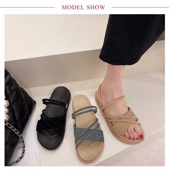 カワイイ サンダル レディース フラット ベージュ 春夏 ブラック ミュール 3cmヒール サンダル ぺたんこ ローヒール レディース アンクルストラップ シンプル 履きやすい クッション