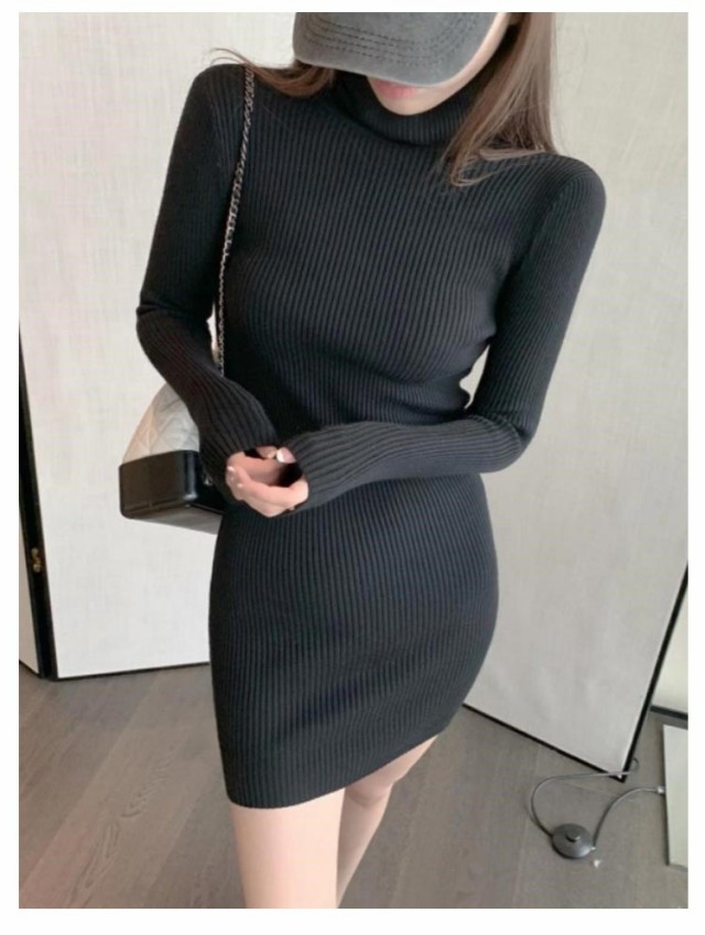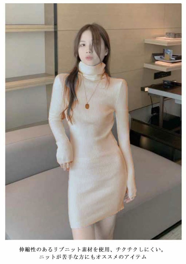 秋冬ワンピ チュニック トップス レディース ワンピース ニットソー タイト 無地 秋冬 ニットワンピース 長袖 セクシー リブ ロングワンピース 膝丈 タートルネック ハイネック カジュアル ニットワンピ 膝上ワンピース オシャレ 大人 ニット 可愛い 韓国風