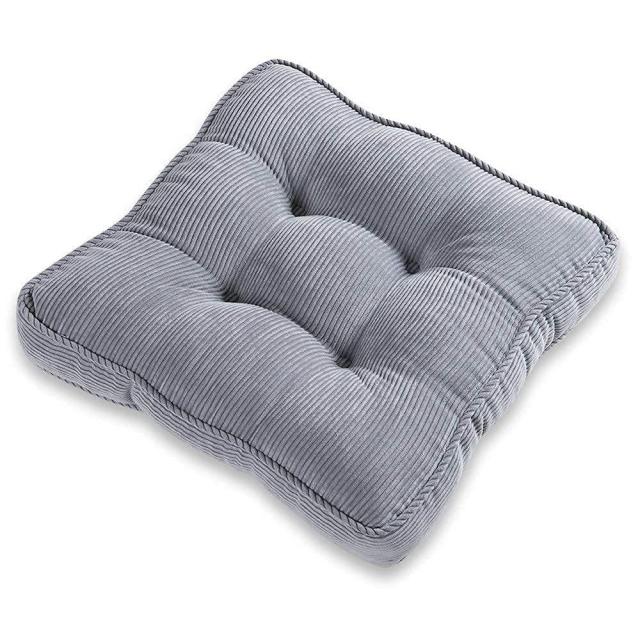 Baibu Home 座布団 クッション 厚め7cm コーデュロイ生地 ざぶとん 無地 フロアクッション グレー クッション 座り心地いい 40cm角