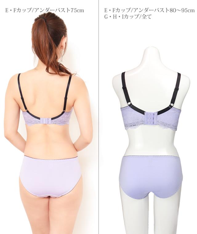 【大きいサイズ】脇高 ドレッシー サテンレース ブラジャー ショーツ 上下セット 下着 (J-5232) ブラック パープル G H I 70 75 80 85 90 bs2444