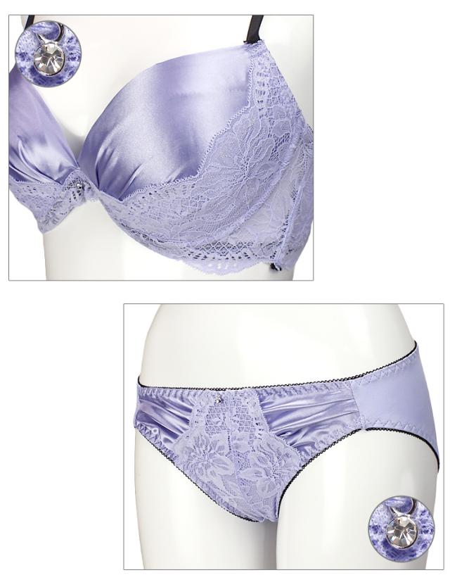 脇高ドレッシーサテンレースブラジャー&ショーツセット。
