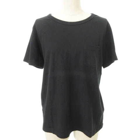 【中古】チャンピオン 半袖 Tシャツ ポケット ワンポイント ロゴ クルーネック 薄手 Lサイズ 黒 ■MET1 レディース