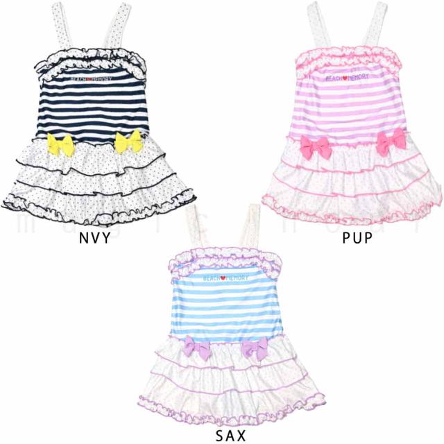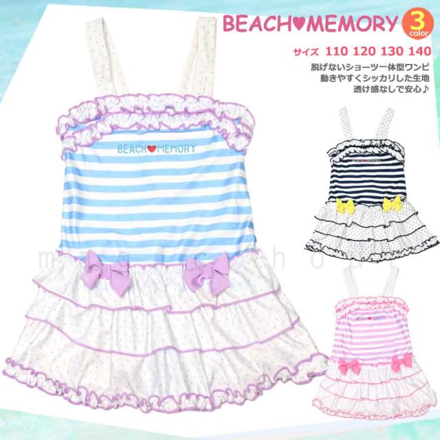 ◆ BEACH MEMORY ビーチメモリー キッズ ジュニア ガールズ オールインワン ワンピース 水着 ボーダー スイムウェア◆
