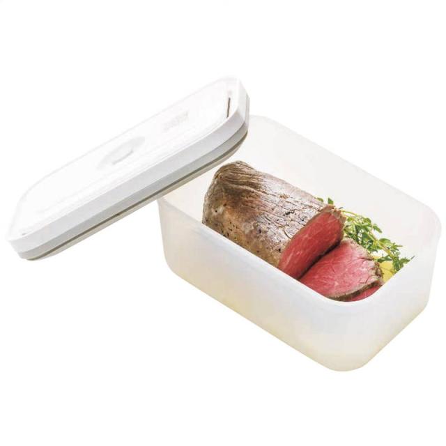 真空にすることで酸化を防ぎ、料理や食材を長く保存できる容器とパックです。