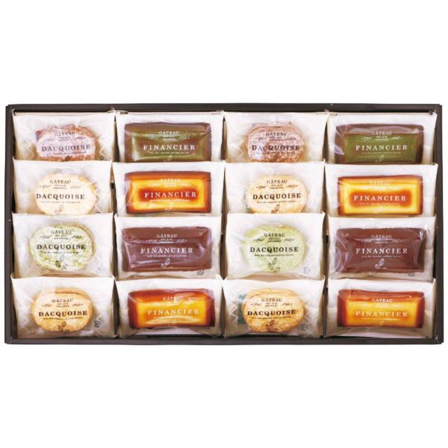 内容:ダックワーズ(プラリネ4個・ショコラ・抹茶各2個)・フィナンシェ(プレーン4個・ショコラ・抹茶各2個)