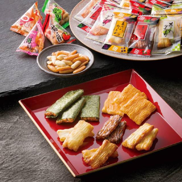 4種類の柿の種(醤油味・わさび味・梅味・カレー味)にピーナッツを組み合わせた柿ピーの詰合せ商品です。