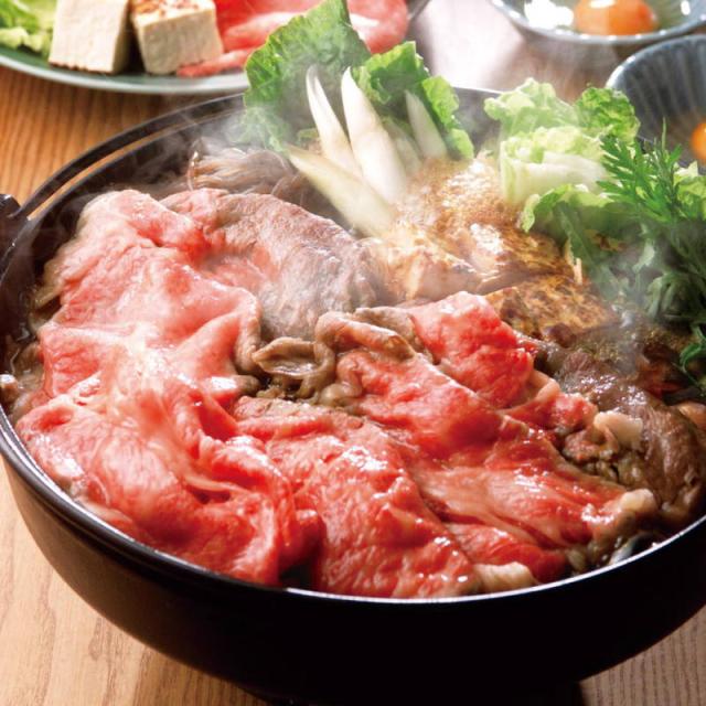 とろけるようなサシ(脂肪交雑)と味わい深い赤身の絶妙なバランスをすき焼きでお楽しみください。