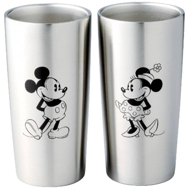 高品質な18-8ステンレスを使用したミッキーとミニーが向かい合う可愛いペアの真空ステンレスタンブラーセットです。