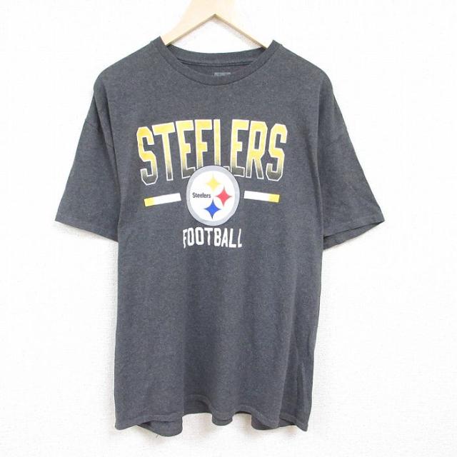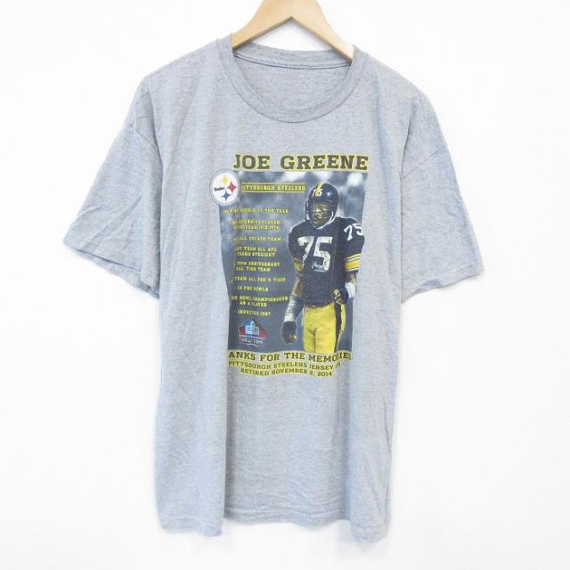 古着 半袖 Tシャツ メンズ NFL ピッツバーグスティーラーズ ジョーグリーン 75 クルーネック グレー 霜降り アメフト スーパー 中古 古着