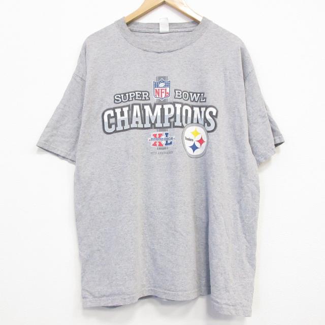 【商品名】 XL★古着 半袖 Tシャツ メンズ NFL ピッツバーグスティーラーズ ジョーグリーン 75 クルーネック グレー 霜降り アメフト スーパーボウル