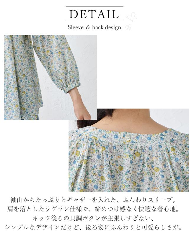 | 商品詳細/その他 | 軽やかに空気を含むシルエットが、日常の動きにやさしく寄り添うブラウス ※A〜C色はリバティプリントではありません |
