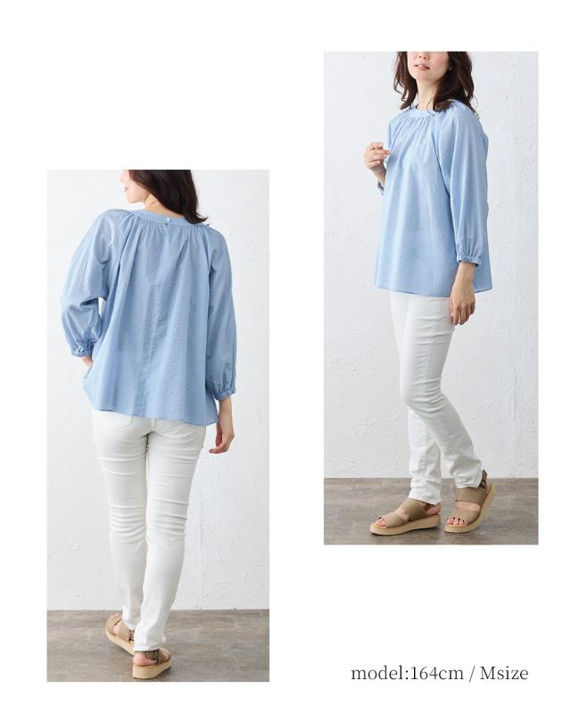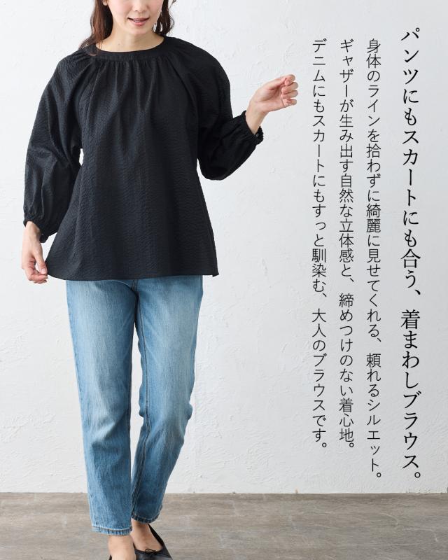 ギャザーが生み出す自然な立体感と、締めつけのない着心地。