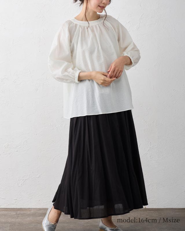 軽やかに空気を含むシルエットが、日常の動きにやさしく寄り添うブラウス。