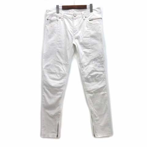 【中古】ノートン Norton ライダース ストレッチ ツイル ロングパンツ 刺繍 ホワイト 白 XL 201N1801 メンズ