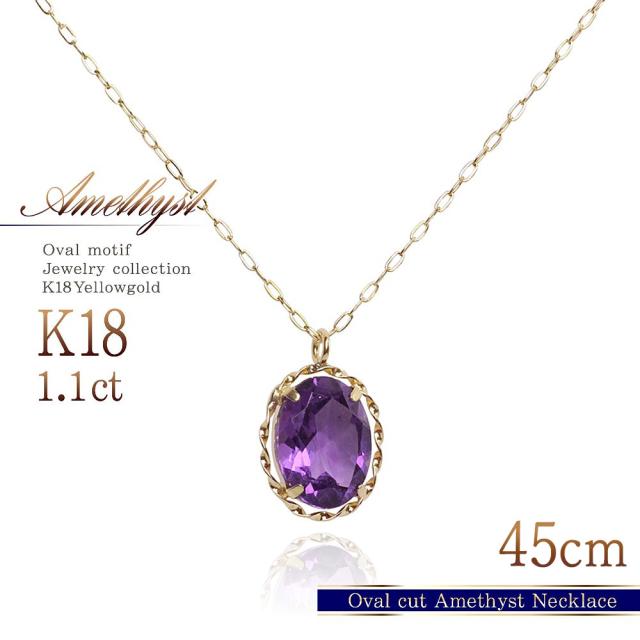 18金 ネックレス K18 アメジスト 45cm 長め レディース 18K アメシスト 2月 誕生石 一粒 ジュエリー アクセサリー 紫 パープル 天然石 18金 アメジストネックレス 一粒ネックレス ホワイトデー お返し 記念日 誕生日 贈り物 女性 彼女 妻 母 祖母 還暦祝い 楕円 シンプル