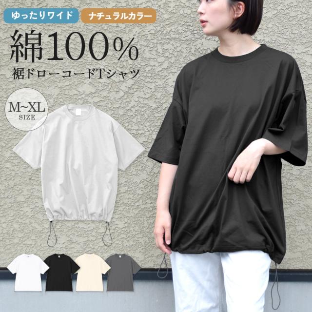 Tシャツ レディース 半袖 綿100% 裾ドローコード 裾しぼり メンズ トップス オーバーサイズ ゆったり 大きめ ワイド コットン シンプル 無地 ビッグサイズ 体型カバー ナチュラル メンズライク (cab111001)