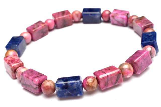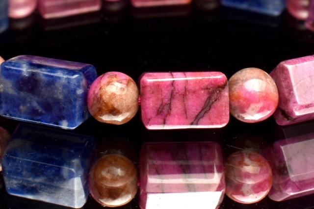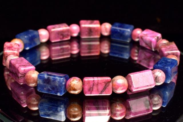 【1点物】5A級☆希少高発色 コバルトドロマイト(コバルトカルサイト)&ソーダライト 10-10.5x6.5-7(丸玉6)mm チューブカット ブレスレット _MA6079
