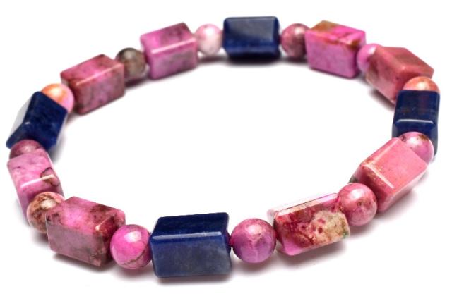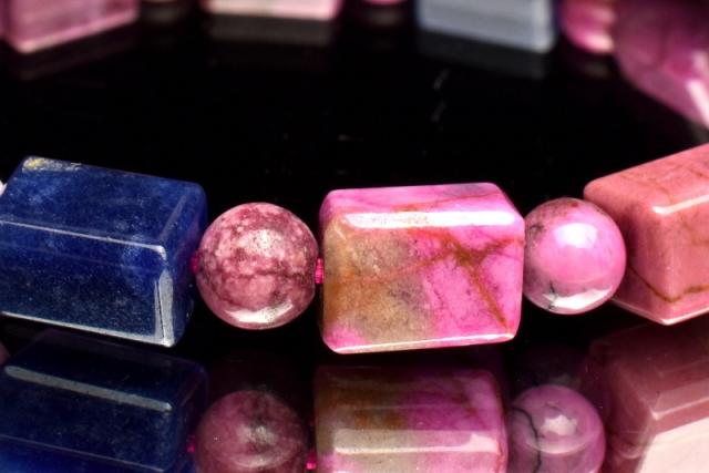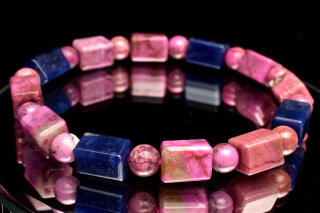 【1点物】5A級☆希少高発色 コバルトドロマイト(コバルトカルサイト)&ソーダライト 9-10.5x6.5-7.5(丸玉6)mm チューブカット ブレスレット _MA6080
