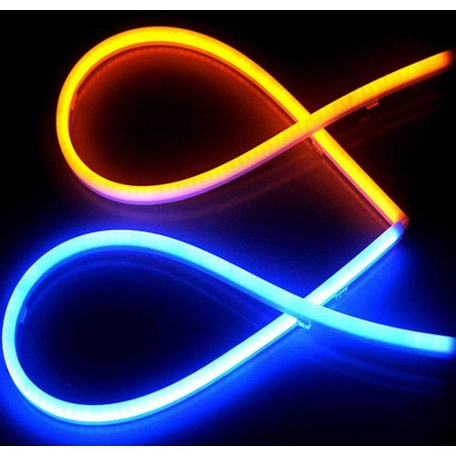 ウインカーテープ シーケンシャルウインカー 流れるLED 昼間アイスブルー色点灯 合図の時黄色光の流れ 変色ウィンカー シリコンチューブライト 愛車ドレスアップ 60cm 2本セット 12V車汎用