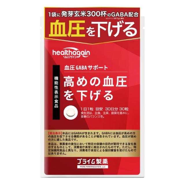 高めの 血圧 下げる GABA サポート サプリ アミノ酸 サプリメント 1ヶ月分 1袋 機能性表示食品 国内生産 健康補助食品 機能性表示食品 プライム製薬