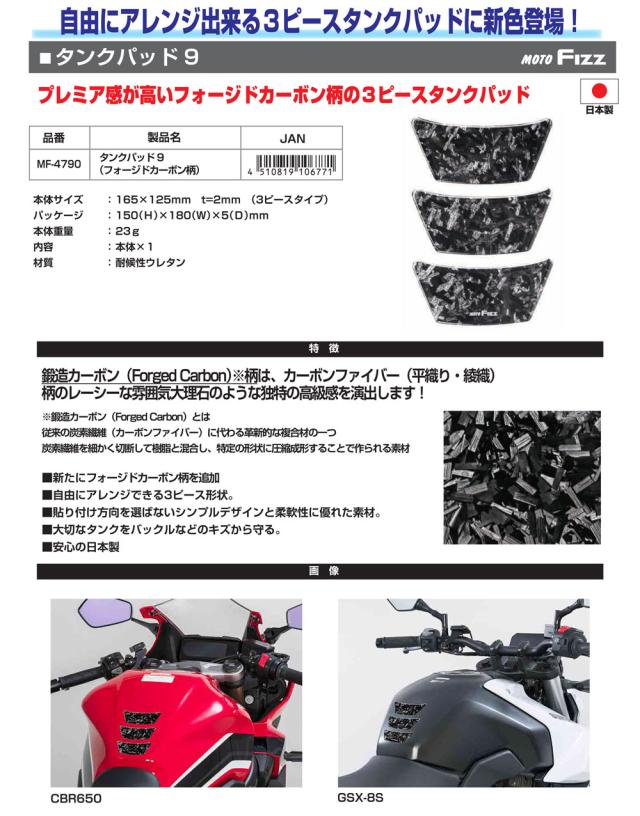 Moto Fizz MF-4790 タンクパッド9【フォージドカーボン柄・スリーピースタイプ】/タナックス 4510819106771