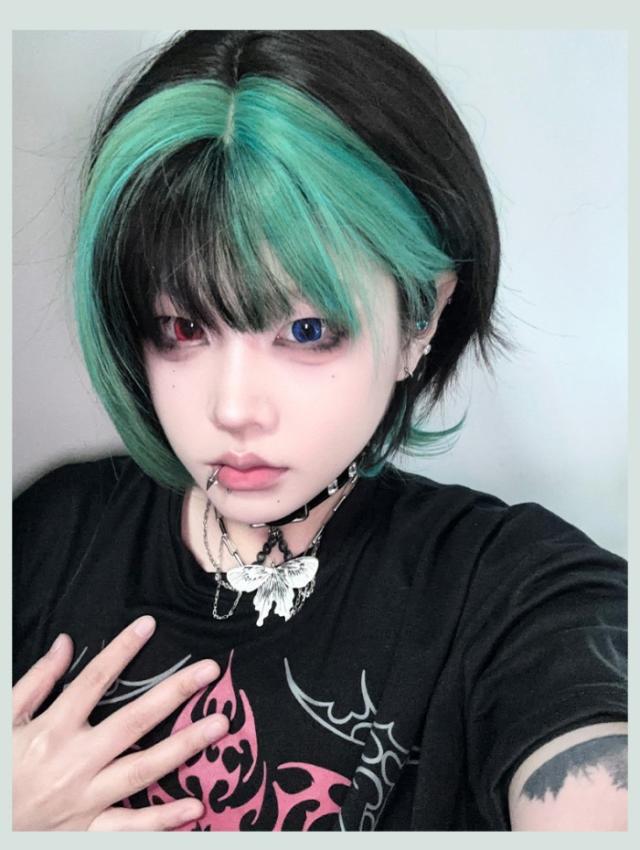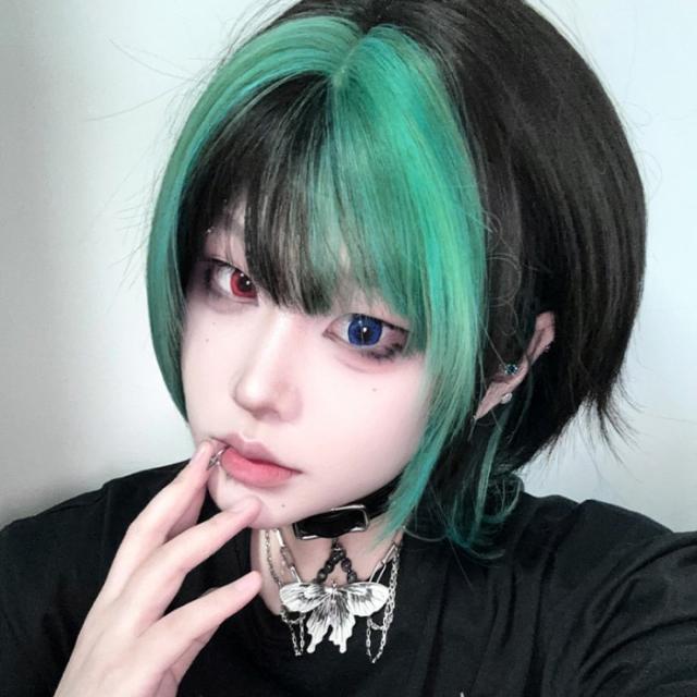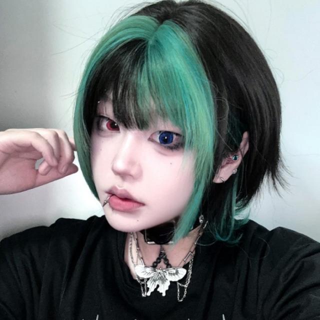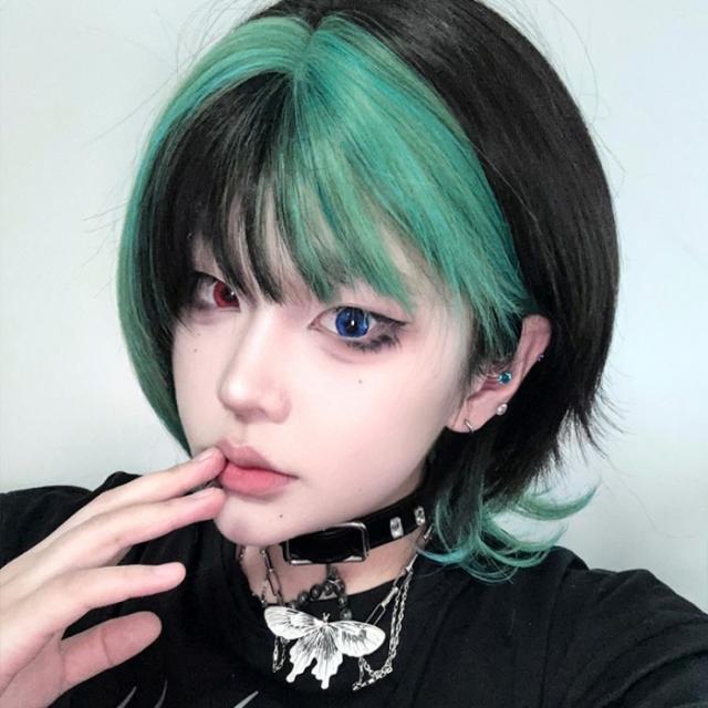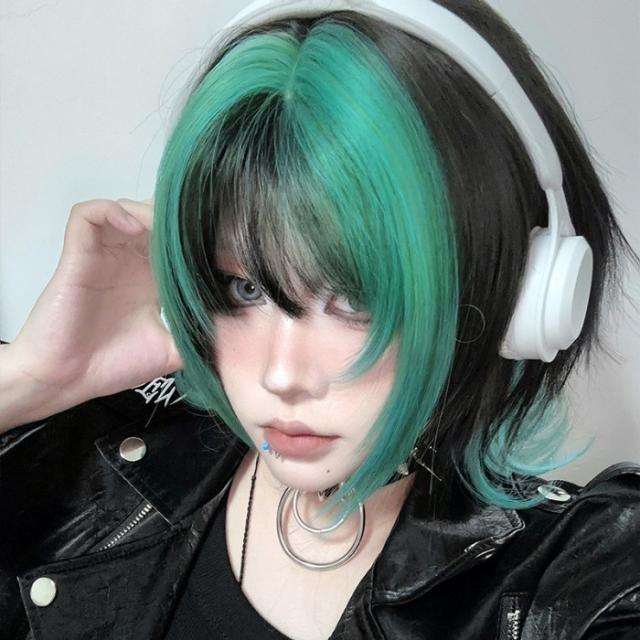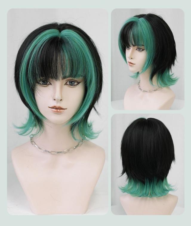 ウィッグ エフォートレスショート グリーン メッシュ 柔らかな雰囲気 襟足すっきり 中性的なジェンダーレス髪型 自然 通気 ウェーブ フルウイッグ すすバング かつら エクウイッグ レディース 前髪 耐熱 コスチューム コスプレ