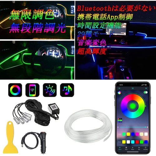 ♪ 【 輝度調節 】: 輝度調節0%から100%までです。 高輝度LEDライトガイドと高品質光ファイバー付きて、照明効果が抜群です。 外部は柔軟なシリコン材質を採用します。 柔らかくて曲がっても大丈夫です。 補助照明は勿論、車内雰囲気ライトにも適用します。
