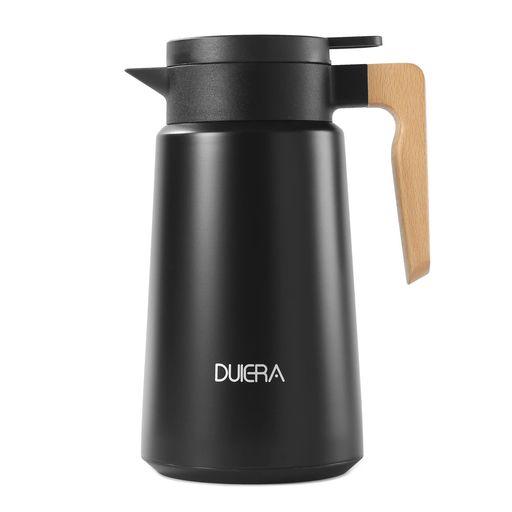 DUIERA1.8リットル魔法瓶ポット保温保冷ポット1800MLポットおしゃれなポットステンレスティーポット保冷ティーポット卓上ポット木製のハンドルと蓋付き、黒