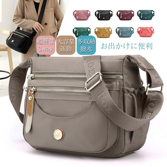 ショルダーバッグ レディース 斜めがけ 大人 軽量 撥水 ナイロン 肩掛け 通勤 ファスナー シンプル バッグ 鞄 かわいい ファスナー付き