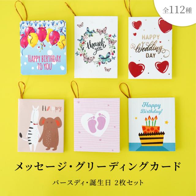 メッセージカード 誕生日 バースディ 二つ折り ミニサイズ 2枚 112種類 おしゃれ かわいい ギフトカード 中は自由に書き込める 無地 ラッピング プレゼントカード ミニレター デザインカード
