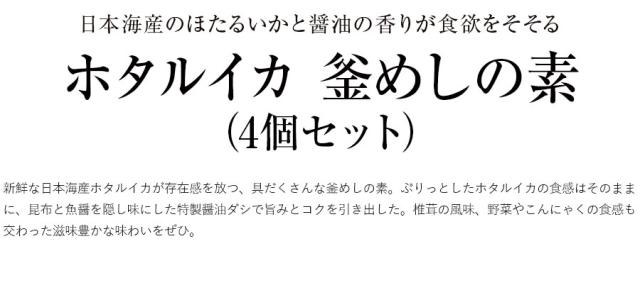 ホタルイカ 釜めしの素(4個セット) ほたるいか 富山 北陸 国産 釜飯 炊き込みご飯 ストック 長期保存 肴 つまみ
