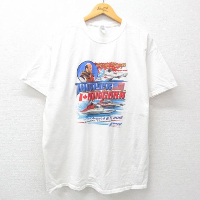 古着 ヘインズ Hanes 半袖 Tシャツ メンズ 00年代 00s ボートレース 企業広告 コットン クルーネック 白 ホワイト spe XLサイ 中古 古着