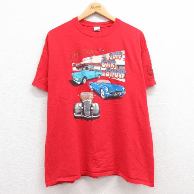 【商品名】 XL★古着 フルーツオブザルーム 半袖 Tシャツ メンズ 00年代 00s 車 クラシックカー 大きいサイズ コットン クルーネック 赤