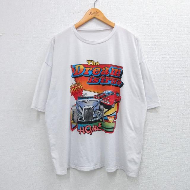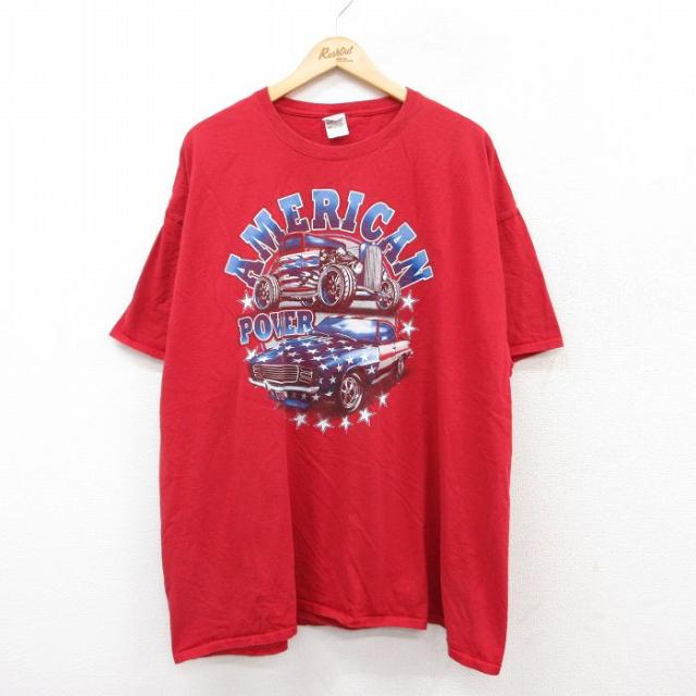 古着 フルーツオブザルーム 半袖 Tシャツ メンズ 00年代 00s 車 クラシックカー 大きいサイズ コットン クルーネック 赤 レッ 中古 古着