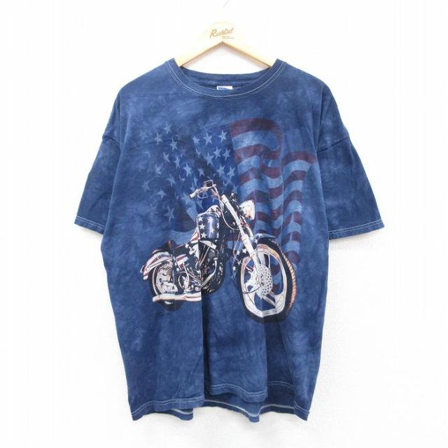 古着 半袖 ビンテージ Tシャツ メンズ 00年代 00s バイク 大きいサイズ コットン クルーネック 白 ホワイト XLサイズ 中古 中古 古着