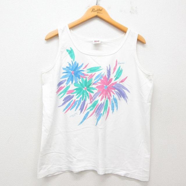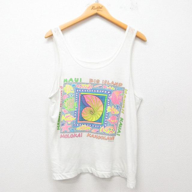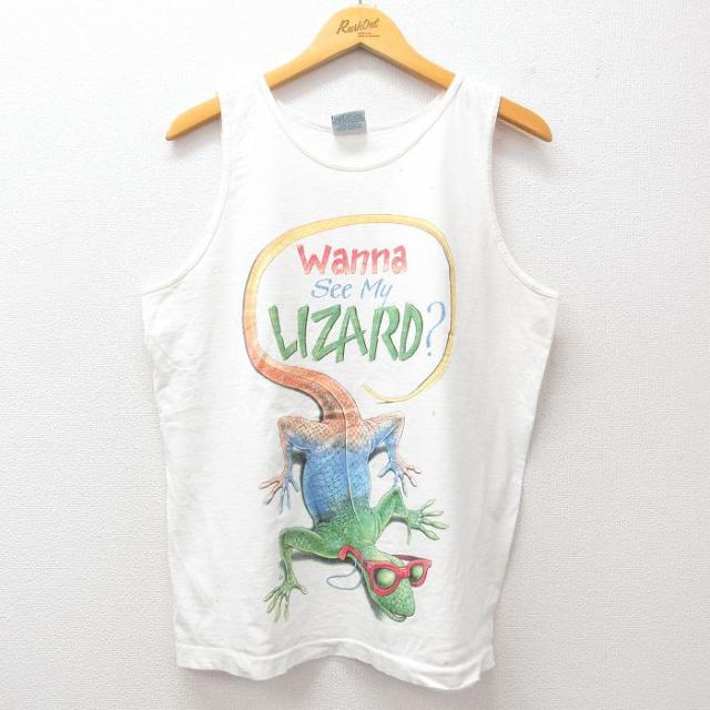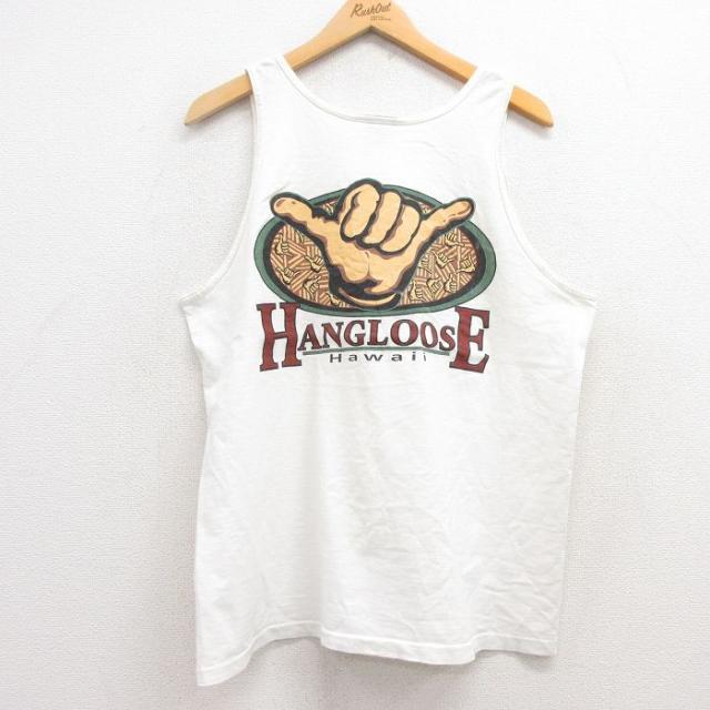 古着 GITANO ビンテージ タンクトップ メンズ 90年代 90s 棒人間 ツートンカラー クルーネック USA製 白 ホワイト Lサイズ 中 中古 古着