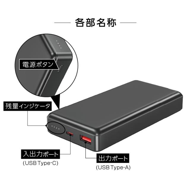 出力(USB Type-C) 5V/3A, 9V/2.22A, 12V/1.67A(最大20W)