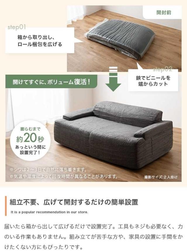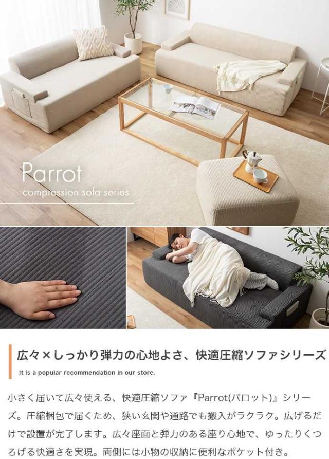 小さく届いて広々使える、快適圧縮ソファ『Parrot(パロット)』シリーズの3人掛けソファ。