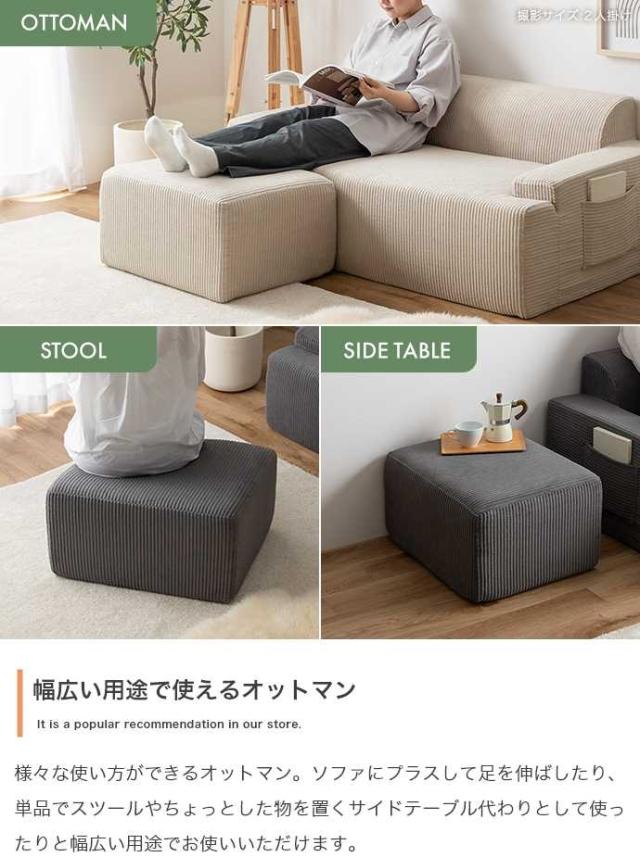 両側には小物の収納に便利なポケット付きで、リモコンや雑誌などをさっと片付けできます。