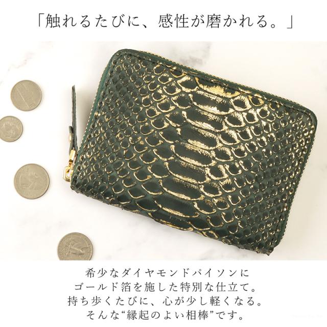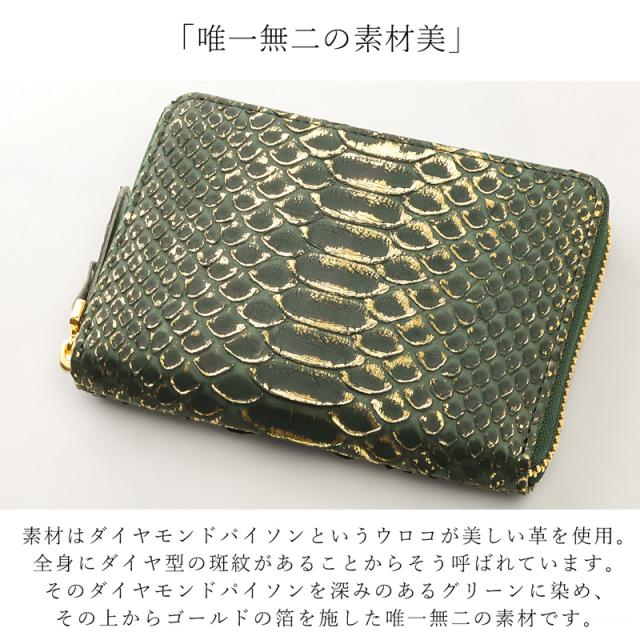 折り財布 レディース ラウンド財布 ラウンドファスナー ダイヤモンドパイソン ヘビ革 金箔 ゴールド 金運 可愛い 使いやすい VIA DOAN ヴィアドアン Verde ベルデ【NO.674】ブランド 人気