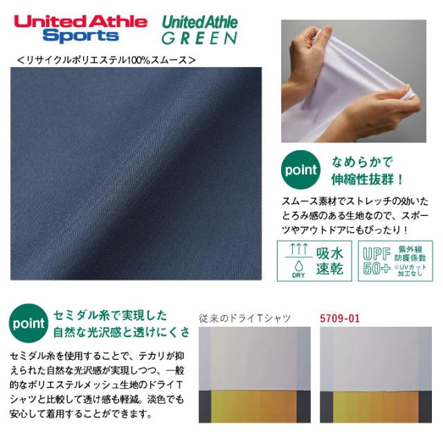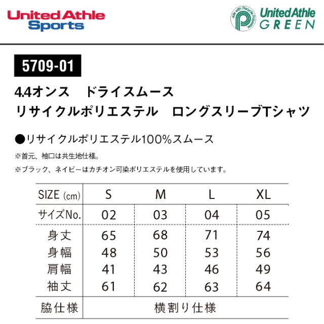 5709-01 ドライスムース 長袖ドライTシャツ リサイクルポリエステル 無地 ユナイテッドアスレ United Athle メンズ レディース 4.4オンスロングスリーブTシャツ