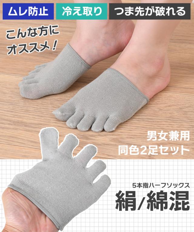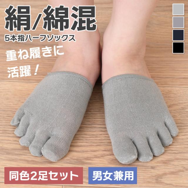 新作 【2足セット】男女兼用5本指シルク混ハーフソックス レディース メンズ ユニセックス ショート ソックス 靴下 5本指ソックス ルームソックス 夏 薄手 綿混 重ね履き ムレ対策 寒さ対策 2足組 デイリー