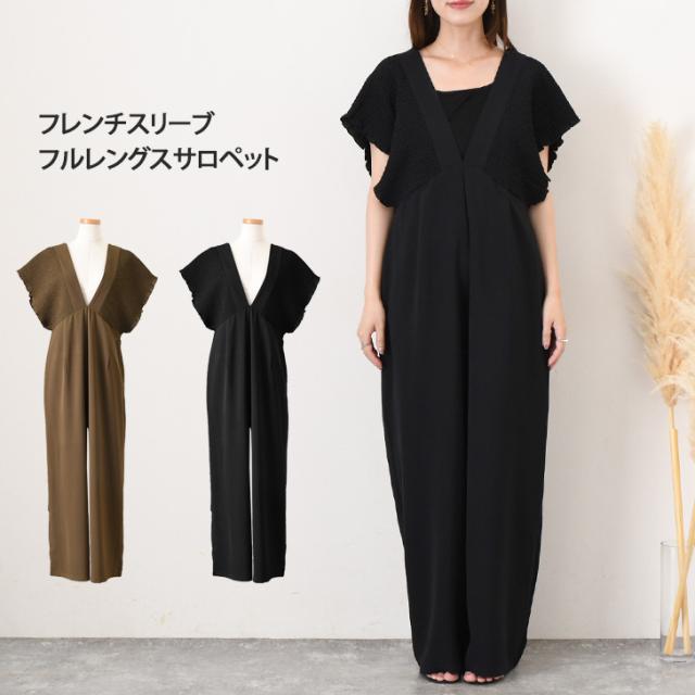 新作 フレンチスリーブシャーリング深Vネックフルレングスサロペット レディース 夏 秋 オールインワン オーバーオール ワイドパンツ 涼しい 速乾 ロング丈 おしゃれ きれいめ ゆったり 大きいサイズ 体型カバー