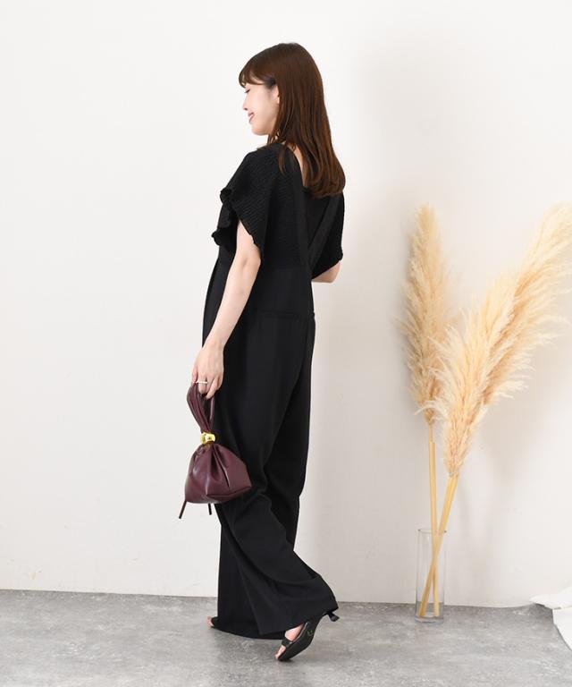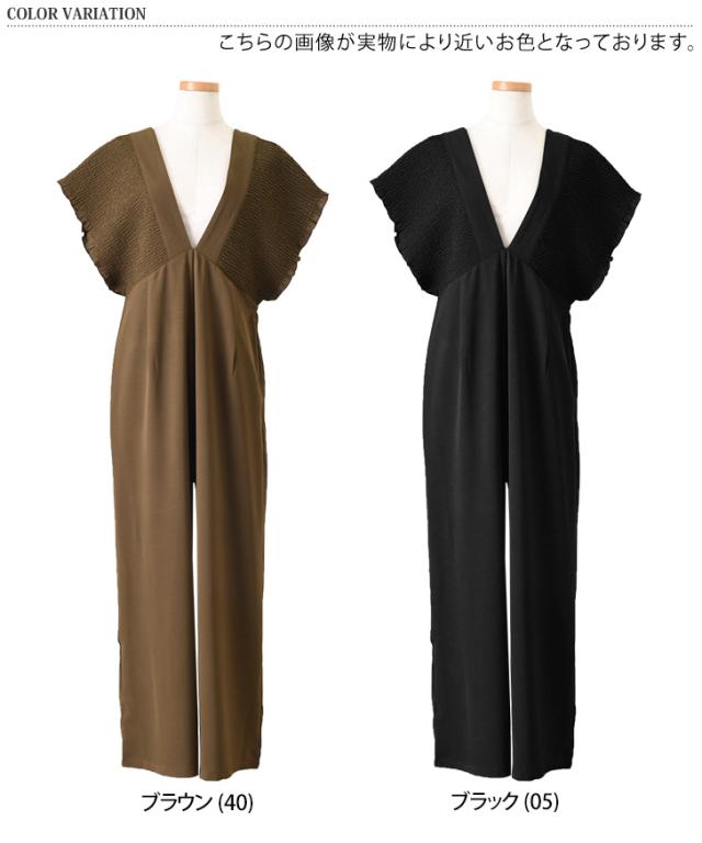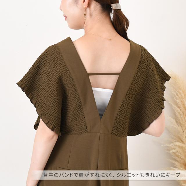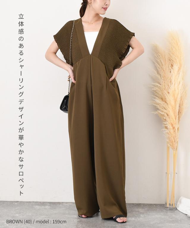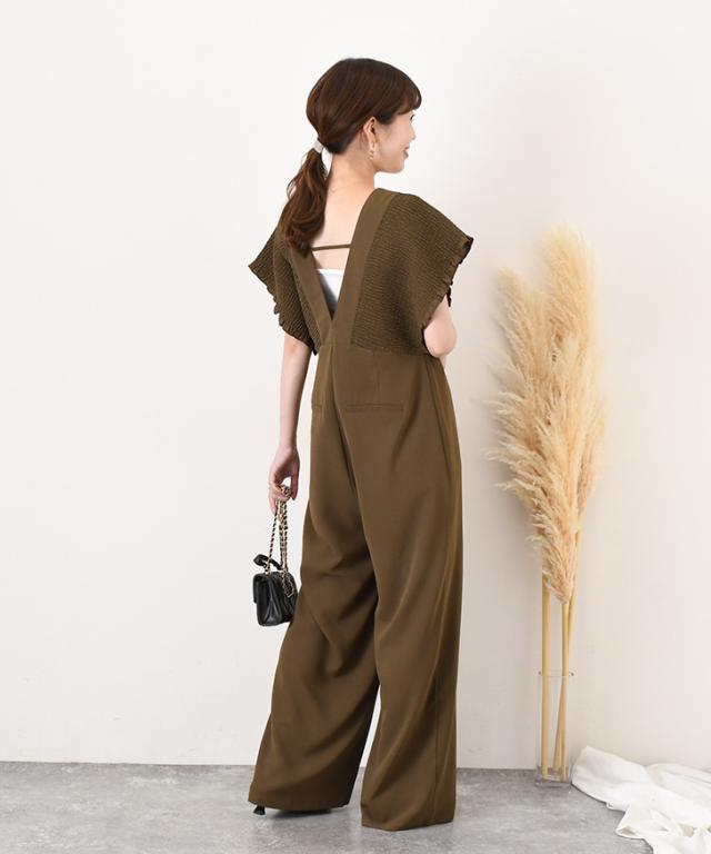 立体感のあるシャーリングデザインが華やかなサロペット