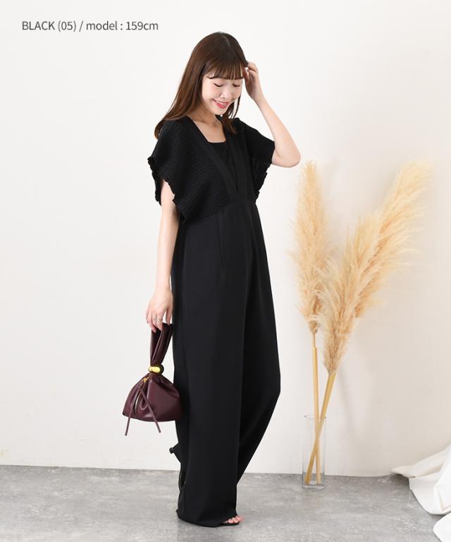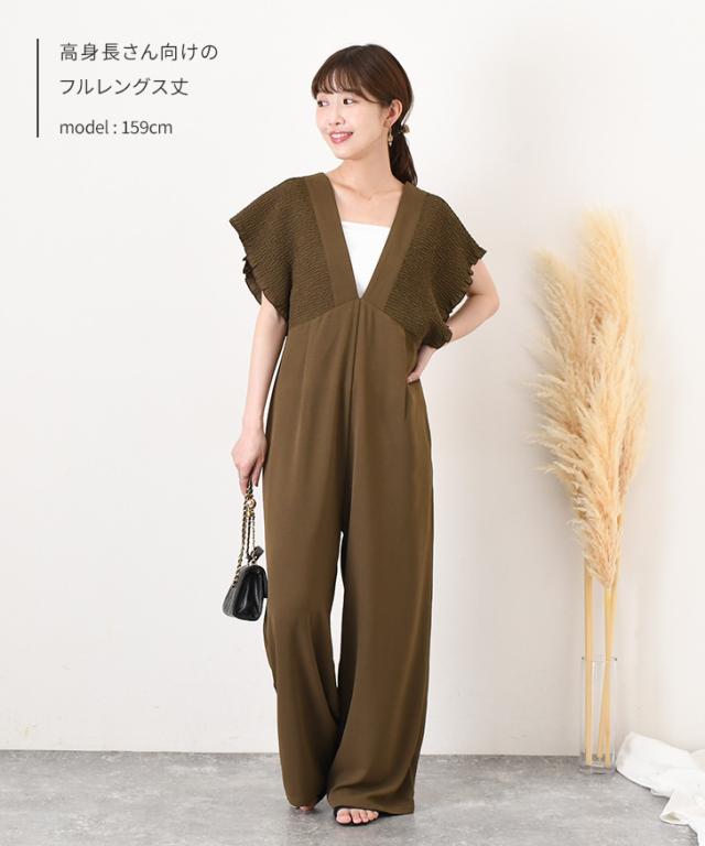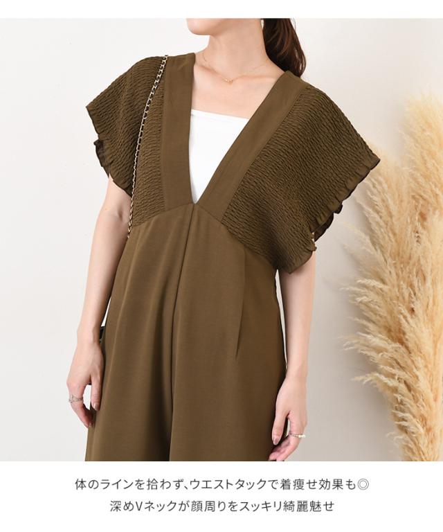 立体感のあるシャーリングデザインが華やかなサロペット