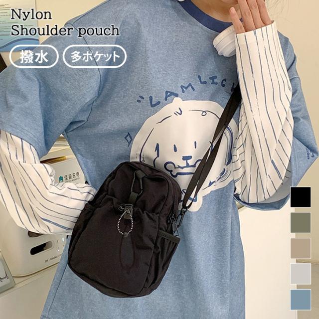 新作 選べる5カラー多収納ポケット撥水ナイロンショルダーポーチ メンズ レディース バッグ ショルダーバッグ ポーチ 小物入れ 肩掛け 斜めがけ 軽量 軽い 小さめ 小さい 収納 おしゃれ カジュアル アウトドア