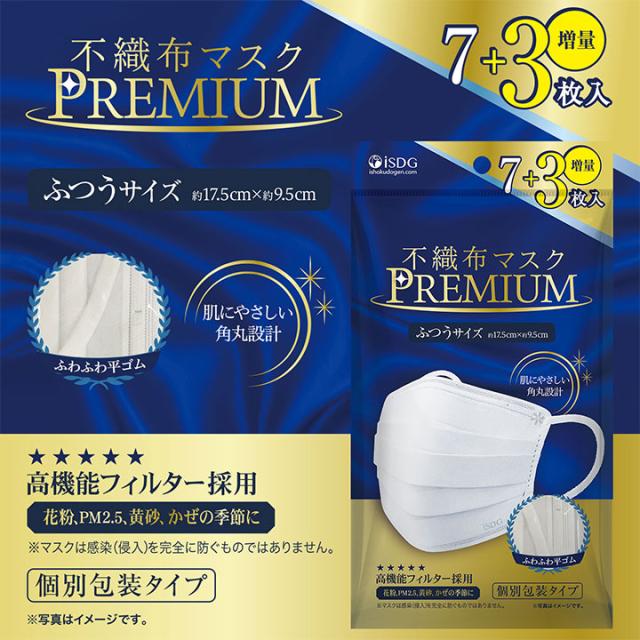 不織布マスク PREMIUM ふつう 7枚+3枚 / 立体型不織布マスク 3層構造 使い捨てマスク 白 ホワイト マスク 不織布 大人用 男性用 高密度フィルター ウイルス 防護 ISDG 医食同源 isdg 医食同源 ドットコム