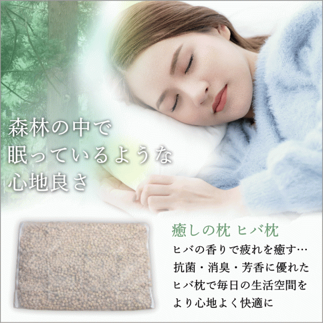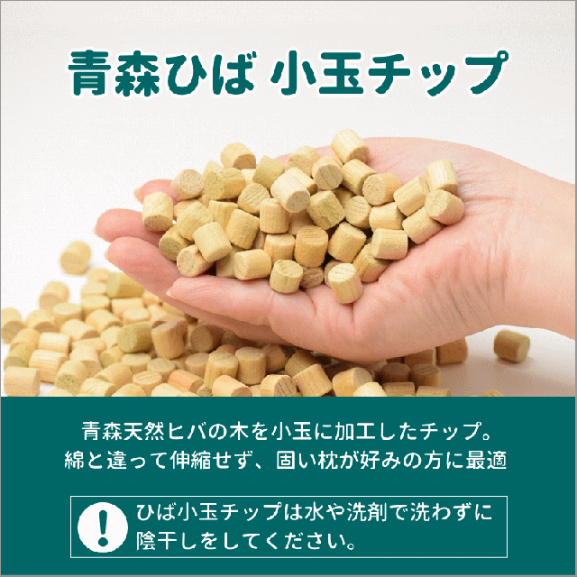 | 使用法 | 枕カバーまたはタオルを巻いてご利用ください ※青森ヒバがあなたの睡眠中支えてほしい場所をしっかりキープしてくれます。 香りが弱くなり始めたらヒバ油かヒバ水を吹き掛ければ何度でも復活します。 ※ひば小玉は陰干しをしてください(水や洗剤で洗わないでください) |
